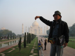 need this coat in India which I use December in Japan ガイドが「タージマハルの先をつまめ」と言うので、ちょっと引っ張ってみた。 今は12月、日本で空港までの道中着ていたジャンパーをインドで着ている。 朝はそれくらい寒い。 |