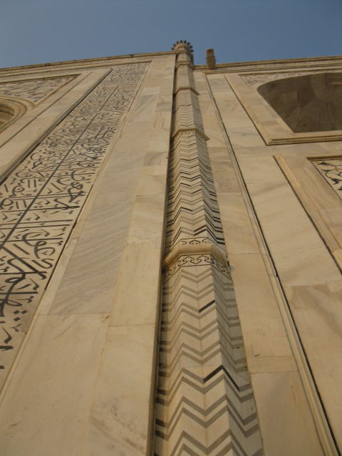 タージマハルの壁と言うか柱、目の錯覚で6角柱が12角柱に見える。 |