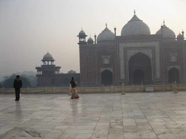 near to Tajimahal still smoggy? だいぶん近づいてきたが、まだ霞んでる。 |