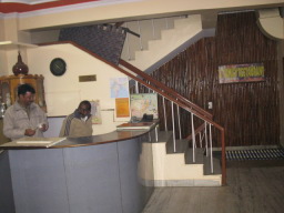 picture at hotel lobby, I wait here tricycle driver Narty, asked to to