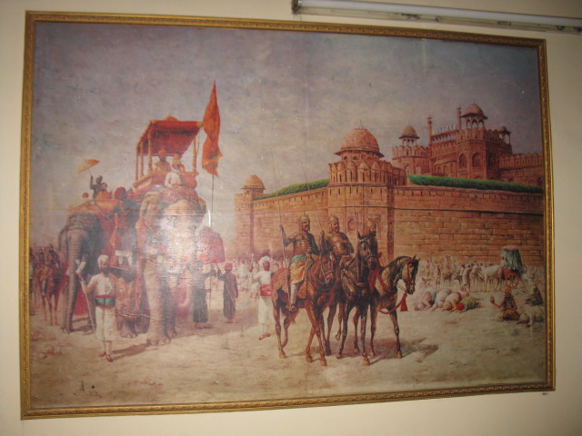 many many train !, I expect train every hour of every two hour. ロビーにあったインドの昔を描いた絵。昨日と同じガイド兼三輪車運転手のナーティと待ち合わせ、AGURAアグラからマトゥラまで列車で行くのに早めに行きたいと言ったら、アグラとマツゥラ間は沢山列車が走ってると「many many many train」と言っていた、1時間毎か少なくとも2時間毎位には列車が走ってるだろうと思った。 |