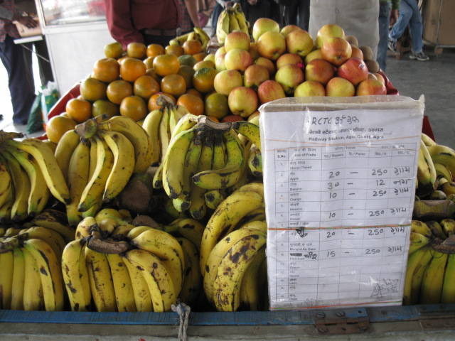 to understand. 数字は読めるがヒンドゥ語で書いてある果物の名前と販売単位が読めないので全く判らない。 お腹も少し空いてるし買っても良いのだが便意をもよおして汚いトイレに荷物は持ち込みたくないし、なるべくお腹を満腹にしない事にした。 一人旅の弱みだ。 |