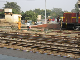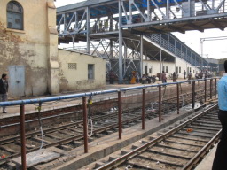 遅れてる列車の新しい到着予定時刻の10分前にホーム変更のアナウンスがあった。 英語のアナウンスは英語であることが辛うじて判るが内容は聞き取れない。 老人と一緒にホームを移動するが車両のトイレが垂れ流しの線路にはゴミやウンコが散乱、注意してレールをまたぎ再びこのホームに上がるが足を掛けるステップなど無い。 ホームの高さは1m以上あるから荷物を先にホームに放り上げて、コンクリート面をよじ登るが身長171cmの私でも簡単ではない。 陸橋を渡ってくる人は、どうしても線路に降りて渡れない人だけ、殆どの人は線路を渡る。レールとレールの間にある手すり状のものは列車に給水する給水口。 車両は色んな種類があるので何処に停っても給水できるようになっている。 |