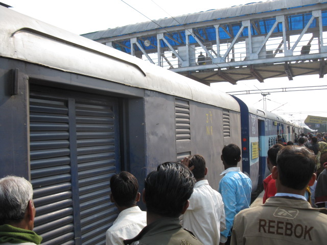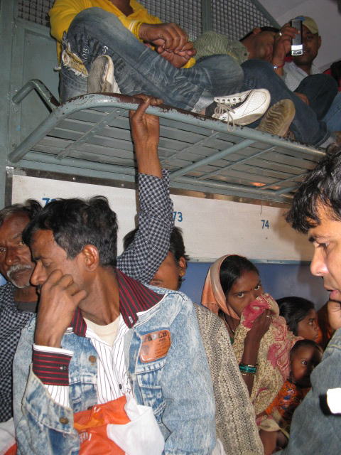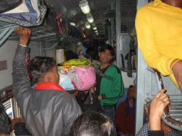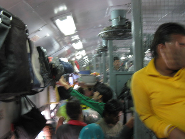 very crowded train, old woman said something Hindu, but I understand "sorry