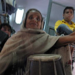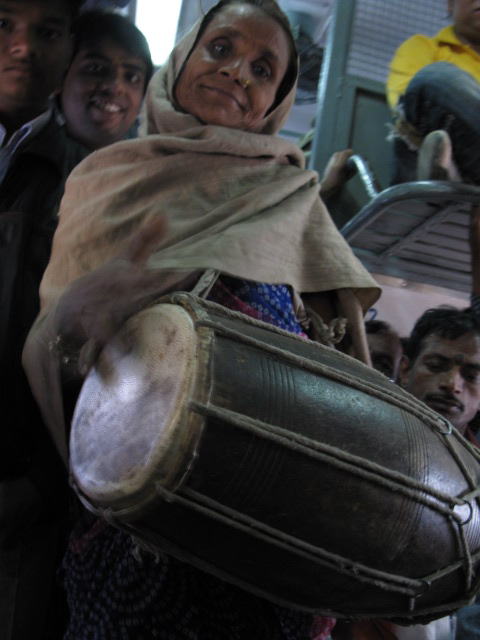 I give 5rupee. 黄シャツの荷物棚に座る男と、下の男は通常の乗客椅子に座っている。こんなに混んでいるのに太鼓に合わせて歌を歌いだすばあさん。 このあと皆からお金を集めだしたので私は5ルピーを器に入れました。 でも皆さんは無料で動画をMVI_0270.AVI太鼓と独唱をお楽しみください。 |