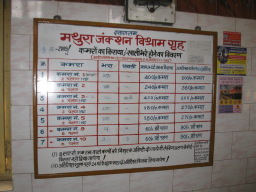 everybody said "arrived Mathura" I get off, but I want to confirm this station. I am looking for indication of station name. but can not find anywhere. I can not trust until I look indicate it somewhere. 皆に「マトゥラ」と言われて降りた。 どこかにマトゥラと書いた看板はないか捜す事に。 地図でも、前もって聞いた駅員にも次の駅だと確認してるが表示を見るまでは安心できない。 |
