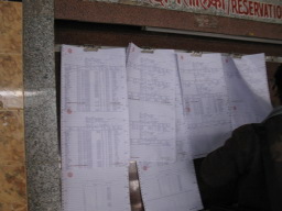 I can not find my name here. 列車の予約客の名前がこうして張り出されるのだが、 私の名前があるかは不明。どの列車の分の予約かも不明。とりあえず私の名前はなかった。 |