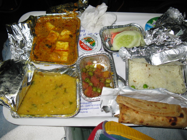 up bowl include soycake. salad at right up 右下のチャパティは真ん中の豆と人参の煮込みを包んで食べる。 左下は荒くつぶしたポテトのスープ、 左上はカレー味スープに古い豆腐(のような固さの)が煮込んである。 御飯はエンドウマメ御飯、カレー味スープをかけるとうまかった。 右上は大きなきゅうりのスライスと人参のスライス。 どれも残さないで食べた。慣れてない味だが無理しなくても食べられる味。 |