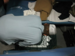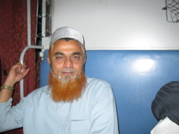 , train going to south, so right side is direction of Mecca? he is Muslim 食事の後、私の切符の指定は下段の寝台だが上段に替わろうかと言うと、喜んで「うん」と言ったので直ぐに上に行った。 すると私が上に行くのを待っていたようにモスリムオジサン達は順番にお祈りを始めた。列車は南下してるから右がメッカの方角か?。床にお祈り用敷物を敷いて四つん這いでお祈りをしている。 彼の左右は一番下の両側のベッド(昼間は椅子になる部分)。 |