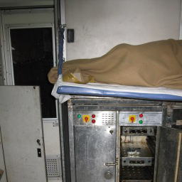 for him, when train shaking door moving with loud noise in mid night. 夜中に起きて車両入口近くに行くと配膳係は毛布を着てベッドにもぐっていた。 しっかり寝ているようだ。 配膳棚の扉などは閉める習慣がないようだ。 列車が揺れるたびにあちこちのドアがバタンバタンと音がしてドア同士もぶつかってるが、やかましいのに寝られるものだ。 ドアってのは彼らにとって邪魔になった時が閉める時のようだ。 |