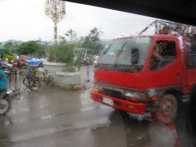rainy day. 雨が止まないのでレンタルバイクの返却は友に任せて車でバス停まで送ってもらうことに。 Philippineでは明日3日(月)が仕事始めなのでセブの町に向かう大きなバスはどれも満員。 仕方なくミニバスに、大きなバスはノンエアコンで54ペソ、これは800ペソだがエアコンが効いてるのが雨の日にはありがたい。 |