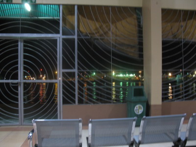 arrive pier at 6:30pm, waiting room. 早めに宿を出て乗船開始前の18時半に港までやってきました。待合室。 |