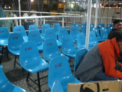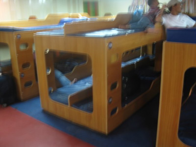 provide blanket. これがエアコンの効いたツーリストクラスの寝台。 ビニルのベッドだが100ペソか本人証明IDを預けると無料でシーツを貸してくれる。 |