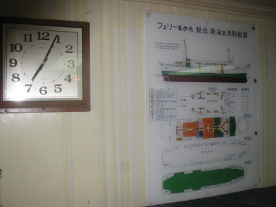 ferry named Wonderful star. I asked sailor my room. 船の名前はワンダフルスター。 僕は何処に行けばよいやら、船員に切符を見せて尋ねる。 |
