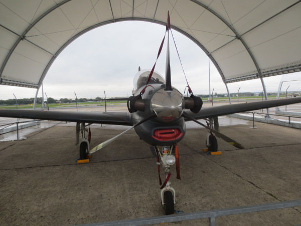 プロペラだがジェットエンジンの練習機。 Propeller thrust jet engine plane for training. |