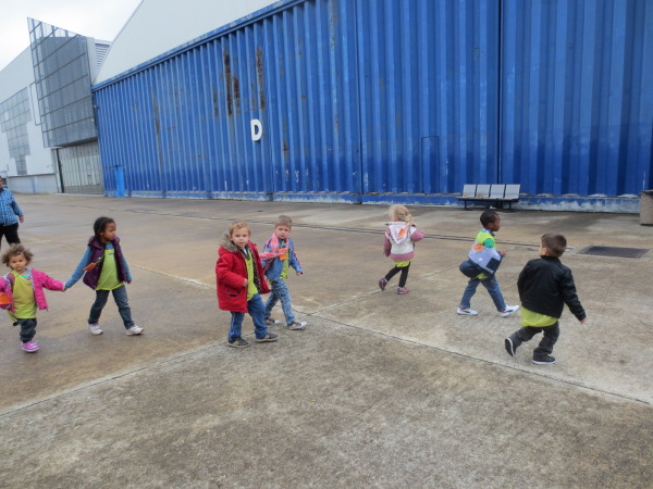 この国ではこんなに小さい頃からこういった施設に慣れ親しんでいる、幼稚園の子供と思われる。 Kid from kinder garden visiting this aero museum, they are familiar to aircraft. |