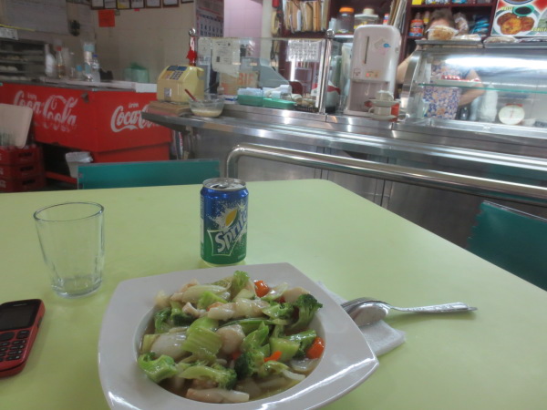 今夜のフェリーでは安くで食べられそうにないので事前にチョプサイで腹ごしらえ。 Since it doesn't look like we'll be able to eat cheaply on tonight's ferry, we'll fill our stomachs with chopped sai beforehand. |