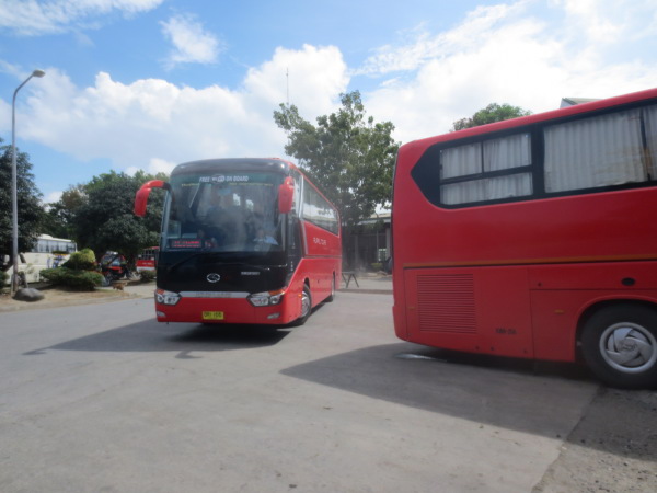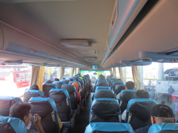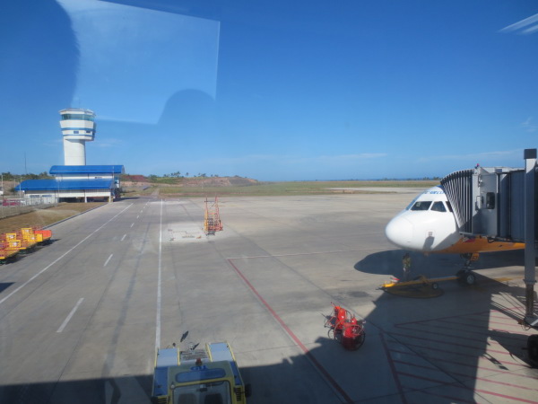 バスは25人乗り日本製マイクロバス、朝5時のバスに乗ったが40分で空港に到着、混む時間帯でも町から空港までは人家や工場の少ない地域なので一時間以内に空港に着くと思われる。 私の飛行機は8時半の予定だから7時のバスでも間に合ったくらいだ。 The bus was a Japanese-made minibus that could seat 25 people. I got on the 5am bus and arrived at the airport in 40 minutes. Even at peak times, the area between town and the airport is relatively quiet with few houses and factories, so I think you'd arrive at the airport within an hour. My flight was scheduled for 8:30, so the 7am bus would have made it in time. |