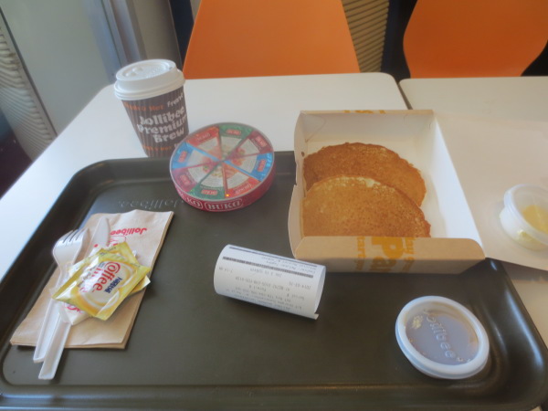 今朝はJOLLIBEで朝食、隣はマクドナルドだがここのマクドはパンケーキがないのでここでは朝食はいつもJOLLIBEE。 This morning I had breakfast at JOLLIBE. There's a McDonald's next door, but they don't serve pancakes, so I always have JOLLIBEE for breakfast here. |