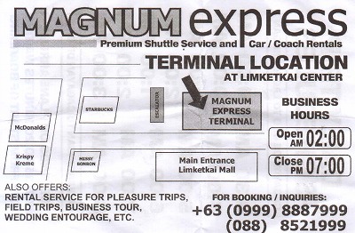 カガヤンデオロのリムケトカイショッピングモールにある空港までのリムジン乗り場の場所を書いた案内 A sign indicating the location of the airport limousine stop at Limketkai Shopping Mall in Cagayan de Oro |