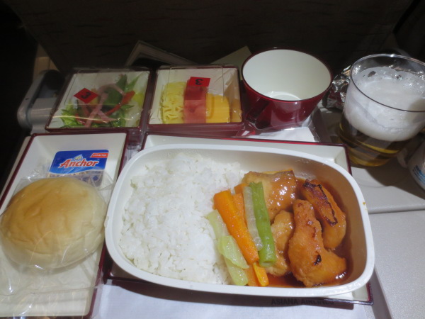 ビーフ、チキン、魚の三種類から魚を選択、搭乗客半分以下だったので私はゴロンと横になって寝て帰った。朝6時10分にインチョンに到着。 I chose fish from the three options of beef, chicken, and fish, and since there were less than half the passengers on board, I lay down and slept on the way home. I arrived in Incheon at 6:10am. |