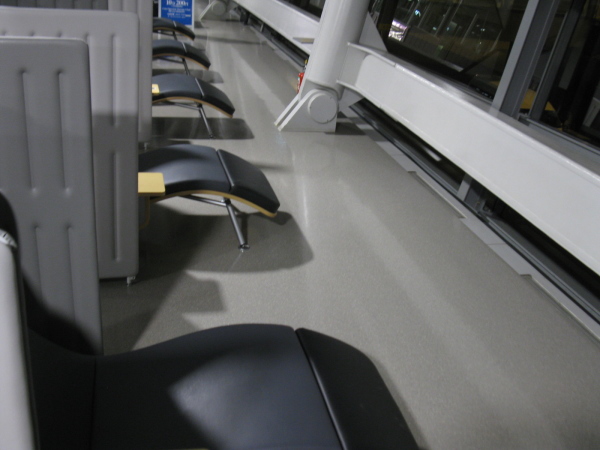 | 関西空港にもリラックスできる椅子を置いてくれるようになった搭乗口13近く。韓国インチョン空港には無料の仮眠できるラウンジがあるが関西空港ではまだないようだ。 Near the boarding gate 13 there is a chair for relaxing placed at Kansai Airport. Korea Incheon Airport has a lounge where you can make a nap free, but it seems that there is not yet at Kansai Airport. |