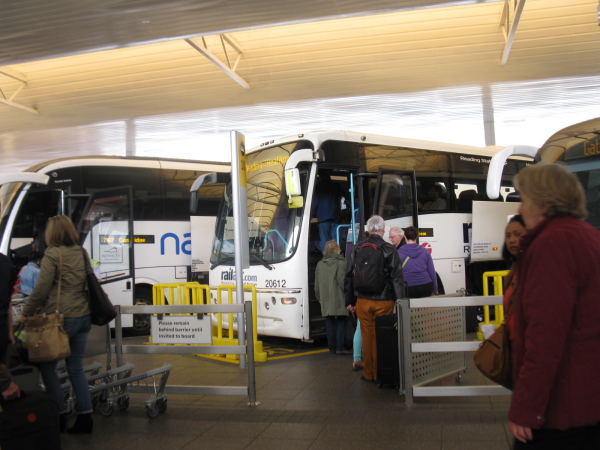 | 555番のバスは20分程あちこちのターミナルを回ってセントラルバスステーションに着く、ここでナショナルエクスプレス社のビクトリアコーチステーション行きのチケットを購入する7.3ポンド¥1317-。「14:15発の501番のバスに乗れ」と言って渡してくれたチケット、501番のバスが時刻より数分前に来たので運転手に見せたら「これと違う」と乗車拒否、「これは14時のバスだ」と言って出発してしまった。彼のバスは遅れているのだ、既に14時過ぎ。 |