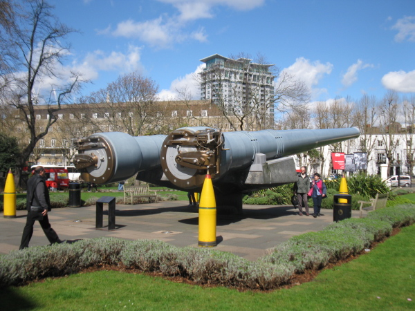 | でも奥の側には入り口はなく大きい通りに面した正面玄関だけが入り口だった。正面に大きな大砲が備えてある。宿から40分程歩く。 帝国戦争博物館Imperial war museum This is only front entrance of this museum, but we can go in other side small entrance, Equipped big cannon, I walk 40 minutes from hotel. |