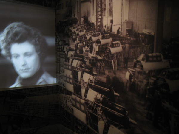 | 戦争中の戦闘機組み立て工場、すぐ横の女性の顔はビデオ上映、椅子があったので座って見た Picture of assemble aircraft factory face of lady is video I watched it sit on chair. |