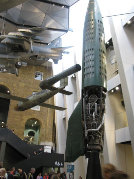 飛行機型のパルスジェットと呼ばれた初期のV1ロケットがある、右のはV2? Proto type rocket V1 called pulse jet is hanging , so right side is V2 ? |
