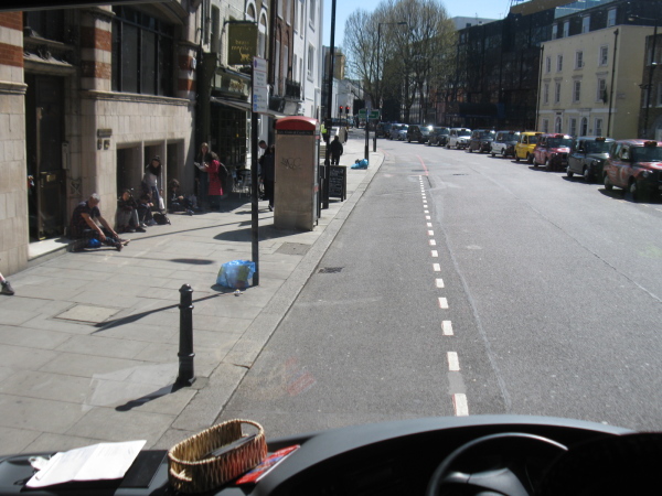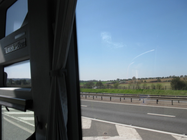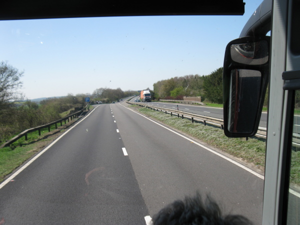 | 運転手に携帯電話で高速道路が事故で混んでいると連絡が入り普通の道に出て違う町経由でロンドンに向かう事に When the highway is crowded in the accident get call the mobile phone, he get information by phone and it goes out to the ordinary road to way back to London via a different town |