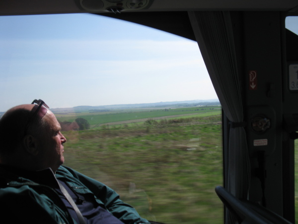 | じゃあこれは普通の道か、白髪の多い年齢の運転手、私は彼のすぐ後ろに座って So this is ordinary road, driver has white hair , i am sitting behind of him |