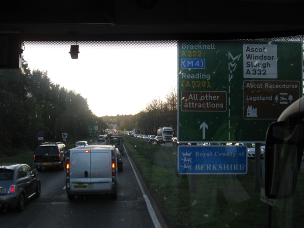 | 渋滞が始まった、運転手は「書いてあるM4が自動車専用道だMはMotor Wayの略だ」と再び解説してくれる Crowded again, driver explained me again, traffic sign show M4 is vehicle road M meaning Motor way. |