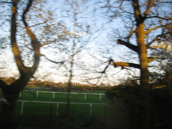 | 塀の中は草地になっているから競馬場、でも競馬場にしては大きすぎる、人々はジョギングしていたり、日本の競馬場の10倍くらいはありそうだ。 Inside of fence is green field, it mean horse racing track but it is very big area sometimes people jogging inside, this is 10 times bigger horse racecourse than in Japan. |