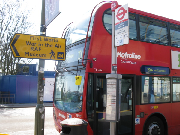 | 今日は王立空軍博物館に行こうと宿で行き方をチェックして出かけました、この地下鉄のcolindale駅まで行きます。初めてICカードを購入、30ポンド課金しておいたが最初のミニマムが5ポンドか合計35ポンド¥6295-、帰る時に残ったのが払い戻しできるから、まあいっか、まだ3日以上あるんだ。 Today I want to go Royal Air Force Museum, I checked out the directions at hotel, I will take this subway, Colindale. I bought an IC card this is first time and charged £ 30, minimum charge is £ 5 so £ 35 for a total of \ 6295- and I can pay back when I left and back home, I still have more than three days. |