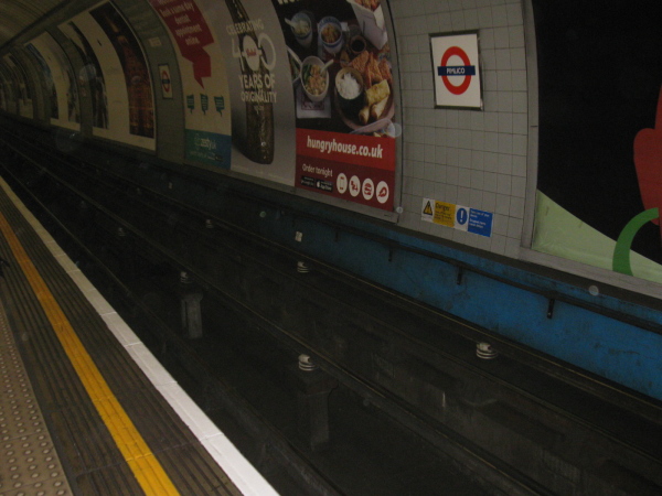 | ここの地下鉄は線路の真ん中とホームから反対側にも電路が走っている、線路以外に電路が両極設けてあるのは日本と違う。 The subway here is electric line in the middle of the track and on the opposite side of the plat home. it is different from Japan that the other side is rail way track as electric contact but in London has two electric conducting paths are provided in addition to the track. |