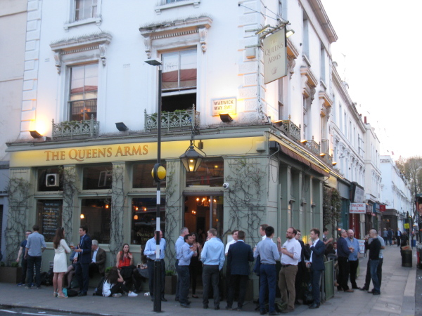 | 今日こそ違う店で食事と思ってあちこち歩くが夕食の時間はどこに行っても食事のできる飲み屋は店の外にまで客があふれ返ってた。結局は今日も同じ店でフィッシュとビールで19.45ポンド、チップを入れて23ポンド¥3900-の食事になってしまった。 Today I strongly expected different restaurant so I'm walking around, but at dinner time, the bar that can eat is full of customers even outside the restaurant. After all, it was 19.45 pounds with fish and beer at the same store today, and it ended up with a 23 pound \3900-meal with chips. |