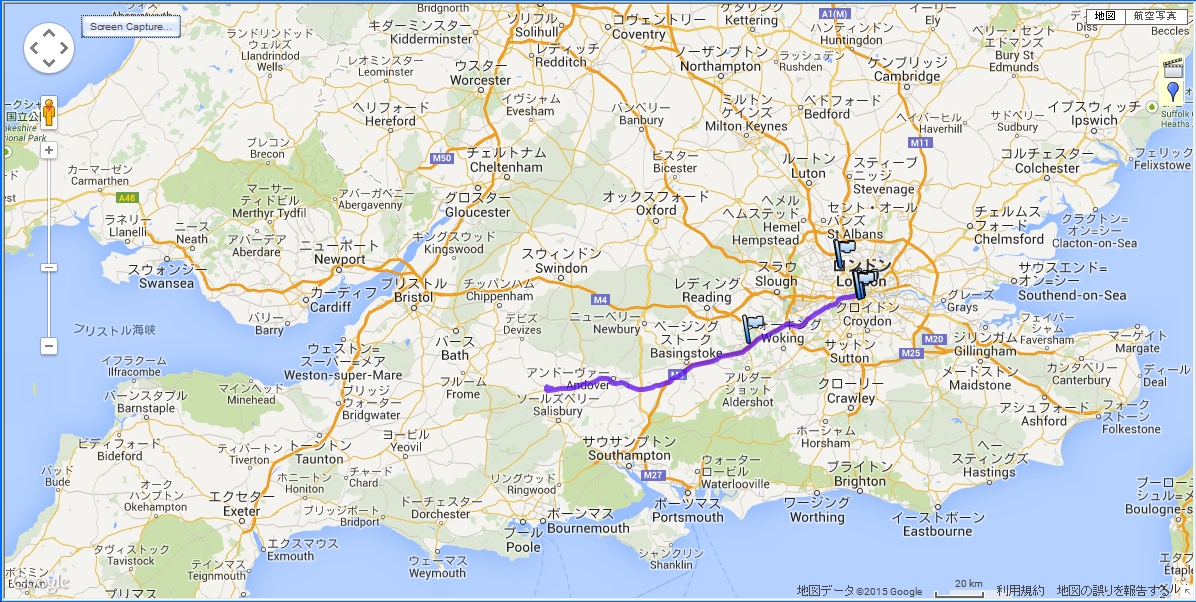 今日のストーンヘンジまでの移動軌跡 Track trace of stonehenge today
