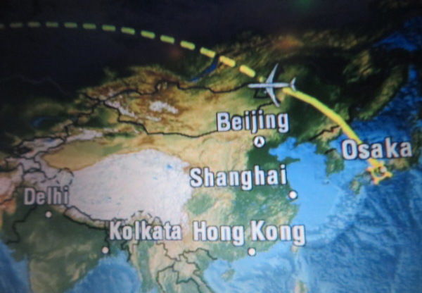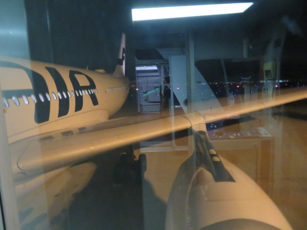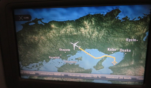 関西空港を朝01:37離陸、操縦室は三名乗務だとアナウンス。 Took off 01:37 morning, announced they have three crew in cockpit. |