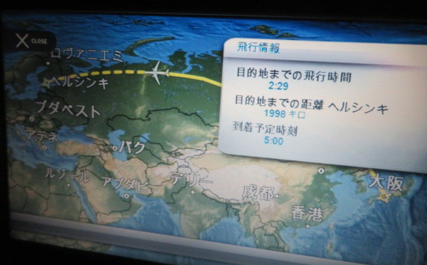 ヘルシンキにはヘルシンキ時間の朝5時到着予定なので10時間ほど掛かる。 Scheduled arrival time Helsinki is 5am so it will take ten hours. |