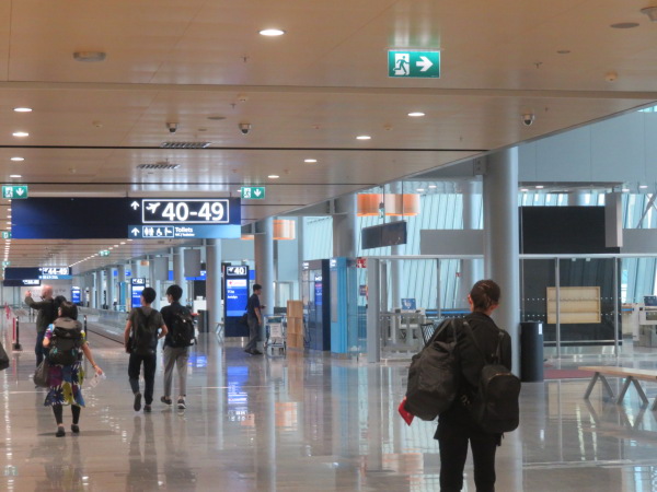 乗り継ぎ客が荷物検査を終えて出てくるのがこの場所、これが左側。 This is the place where transit passengers come out after baggage inspection, this is the left side |