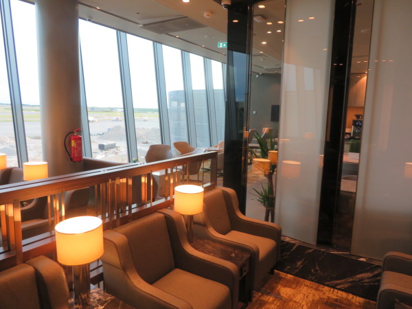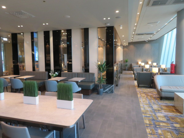 ラウンジ受付から入ったところ、ラウンジは5時開店早々なのと、到着便の少ない朝早い時間なので客はまだいない。 When I entered from the lounge reception, the lounge opened early at 5 o'clock, and there are few arrival flights early in the morning, so there are no customers yet |