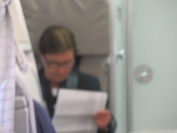 機体前方トイレの後ろに座る私を理不尽に困らせた年寄りのバカ乗務員、あからさまに目の前で写真を撮って消せと言ってきたら貴方の異常な対応を報告するから消さないとのやり取りにするつもりだったがバカ相手に不必要に疲れるだけだしやめた。この写真で充分。この客室乗務員には本当につくづく嫌な思いをさせられた。 |