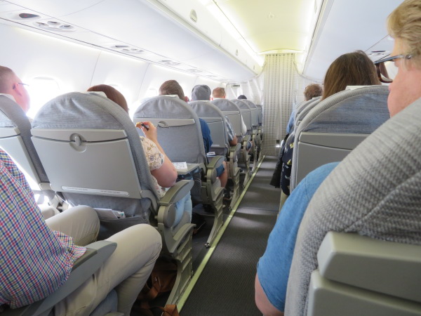 何とか間にあって乗れたAY1411便、乗客はバスで後部搭乗口から搭乗、乗ったところで機体後部のトイレに行きたいと言ったら機体前方のトイレに行けと言う、ところが前方のトイレは誰かが入っていて私はここで待ちたいと言ったら「ダメだ機体後方のトイレに行け」と言う、ところが狭い通路を大勢の客が後部入り口から入ってきて着席する時なので「混んでいるから今行くのは邪魔するだけなので皆が着席するまで前方のスペースで待つ」と言ったら、ダメだここで待つのは許さない今すぐ後方のトイレに行けと強制する。 仕方なく大勢の搭乗客の乗り込みを邪魔して時間掛けて後方に行くのだが、最後部に着いたら全員が乗ったから今はトイレは駄目だ直ぐに着席せよと後方担当の客室乗務員は再び強制してくる。 |