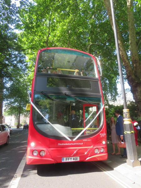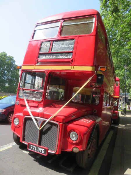 ロンドン名物二階建てバスをチャーターしてある。 Chartered London's famous double-decker bus. |