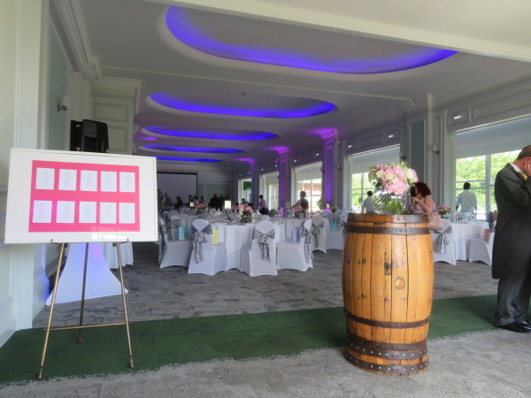 レセプション会場入り口の張り紙で自分の座るテーブルがどこかを探す Find out where your table is on the poster at the entrance of the reception |